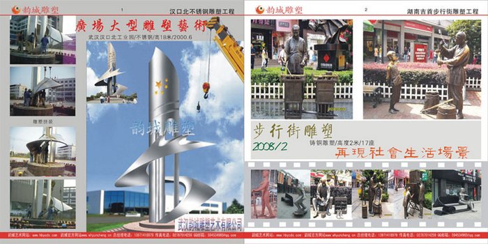 武漢韻城雕塑藝術公司,省市大型雕塑企業,公司位于武漢市江夏區世紀廣場,工廠總面積9000多平方,藝術名家之多,配置三維建模和3D掃描打印先進系統,大型程控雕刻設備。精典工程有:武漢萬達步行街雕塑,武鋼工業遺址公園雕塑,天河機場T2銅雕塑,漢正街復地大型不銹鋼雕塑,漢口吉慶街雕塑工程,荊州廣場鳳凰雕塑,貴陽大數據廣場雕塑...